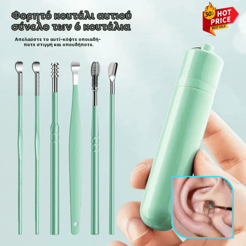 【Αγοράστε 1 και πάρτε 1 δωρεάν】Δύο για €22【11 ευρώ ανά τεμάχιο】👂Σετ εργαλείων αφαίρεσης κεριού αυτιών 6 τεμαχίων με σωλήνα αποθήκευσης | Πλήρες σετ φροντίδας αυτιών – Εργαλείο έξι σε ένα! 👂