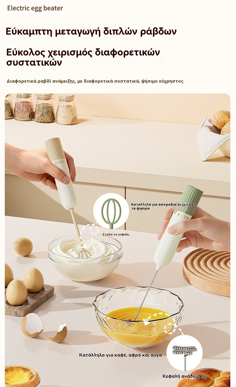 🥚 Ασύρματο μίνι μίξερ χειρός – χτυπά αυγά & αφρόγαλα σε δευτερόλεπτα