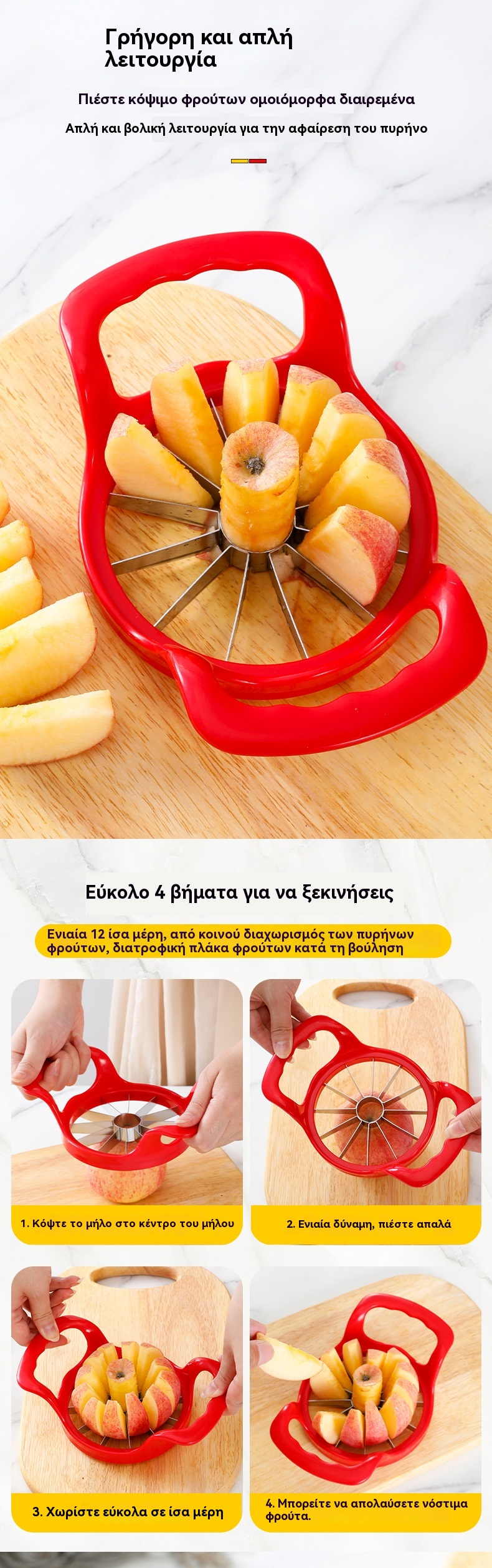 ✅🍏 Πολυλειτουργικός κόφτης φρούτων 2-σε-1 — κόβει & αφαιρεί τον πυρήνα σε 1 κίνηση
