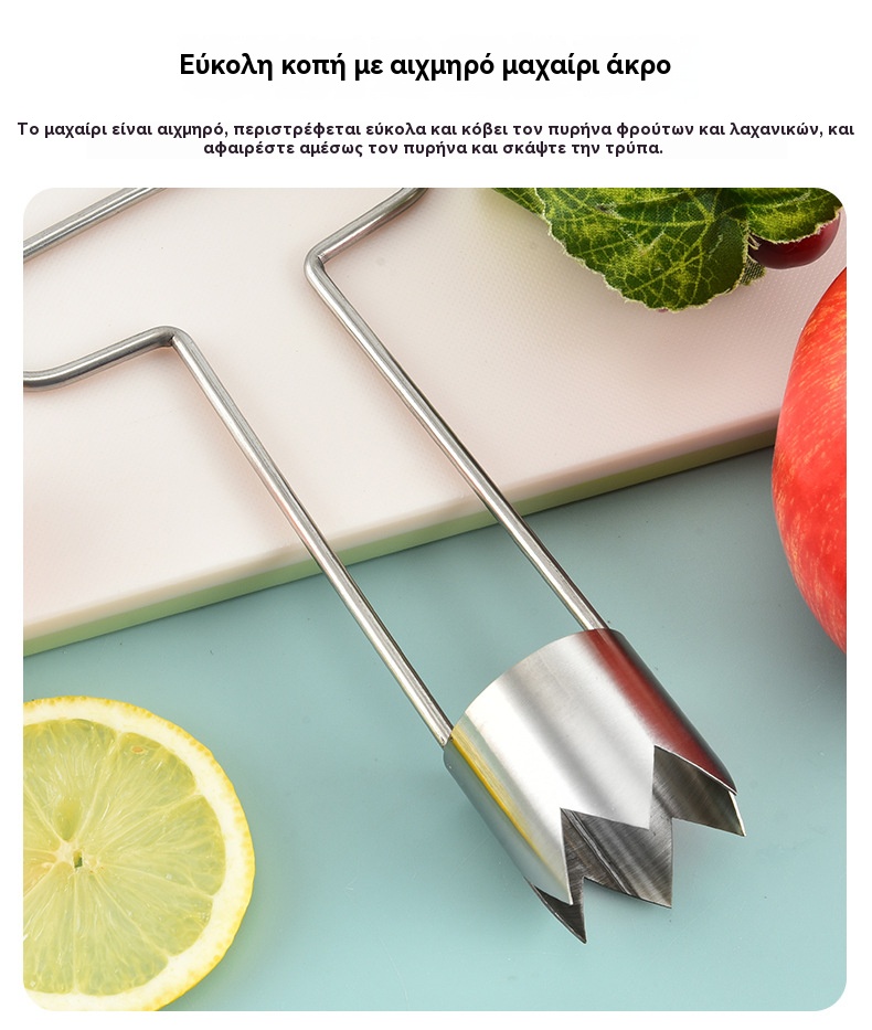 ✨✨【Αγοράστε ένα, πάρτε ένα δωρεάν】✨2 τεμάχιο €23✨Πολυλειτουργικός εκπυρήνας φρούτων και λαχανικών, υλικό τροφίμων για πικρή κολοκύθα και εκπυρήνωση μήλου, συσκευή κουζίνας.