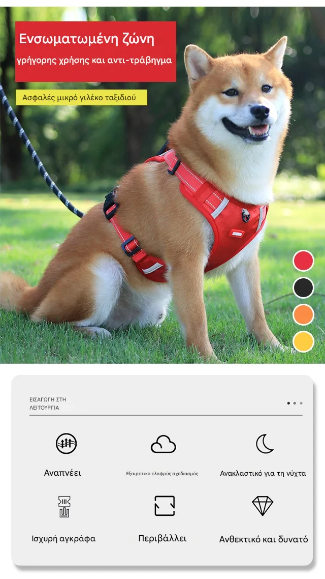 🐶【5-30 kg】Λουράκι σκύλου με ιμάντα, αντι-τράβηγμα, για κατοικίδια.