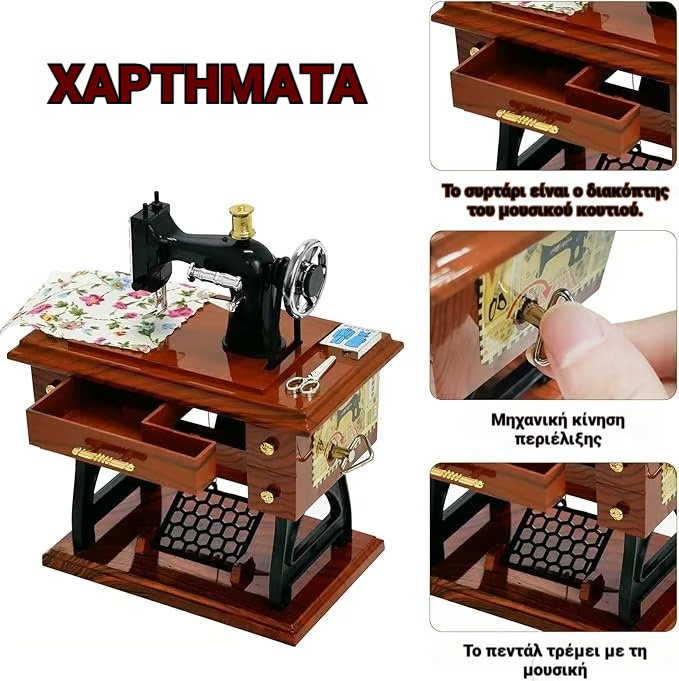 🔥🔥🎵Μουσικό κουτί από μίνι ραπτομηχανή από ξύλο🎁