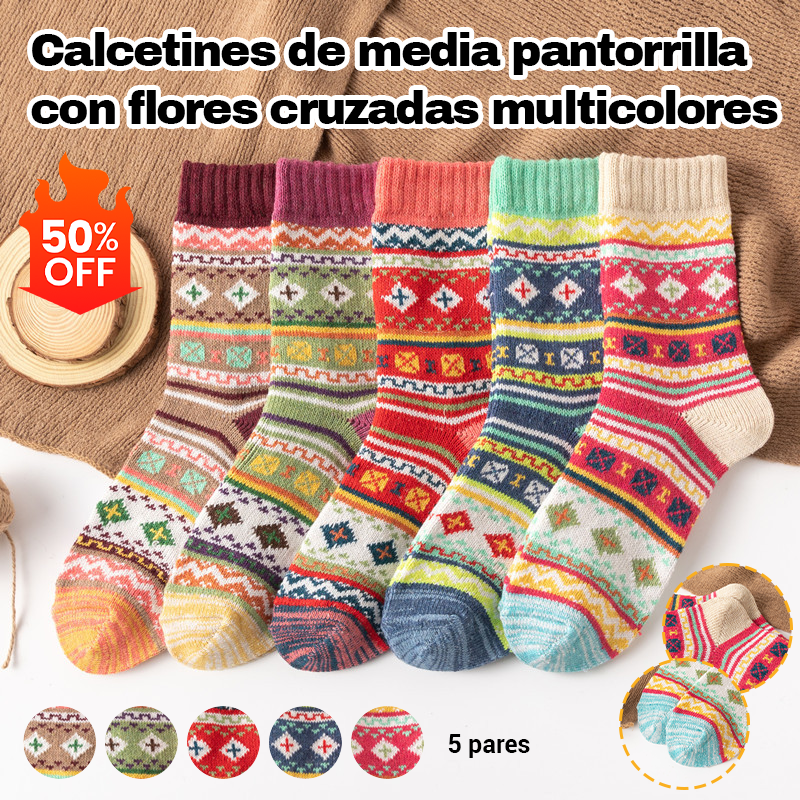 🧦🧦🔥🔥【5 ζευγάρια για 24 ευρώ --- Ένα ζευγάρι από κάθε χρώμα】Γυναικείες χοντρές ζεστές μάλλινες κάλτσες σε ρετρό στυλ.